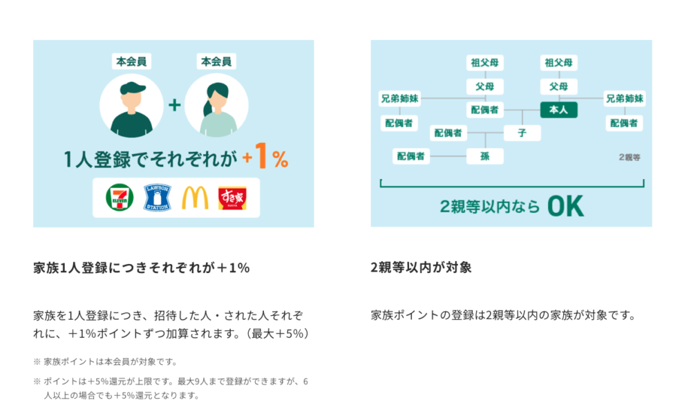 上記カードの本会員が家族のなかに一人いるとポイント還元率が1%上がります